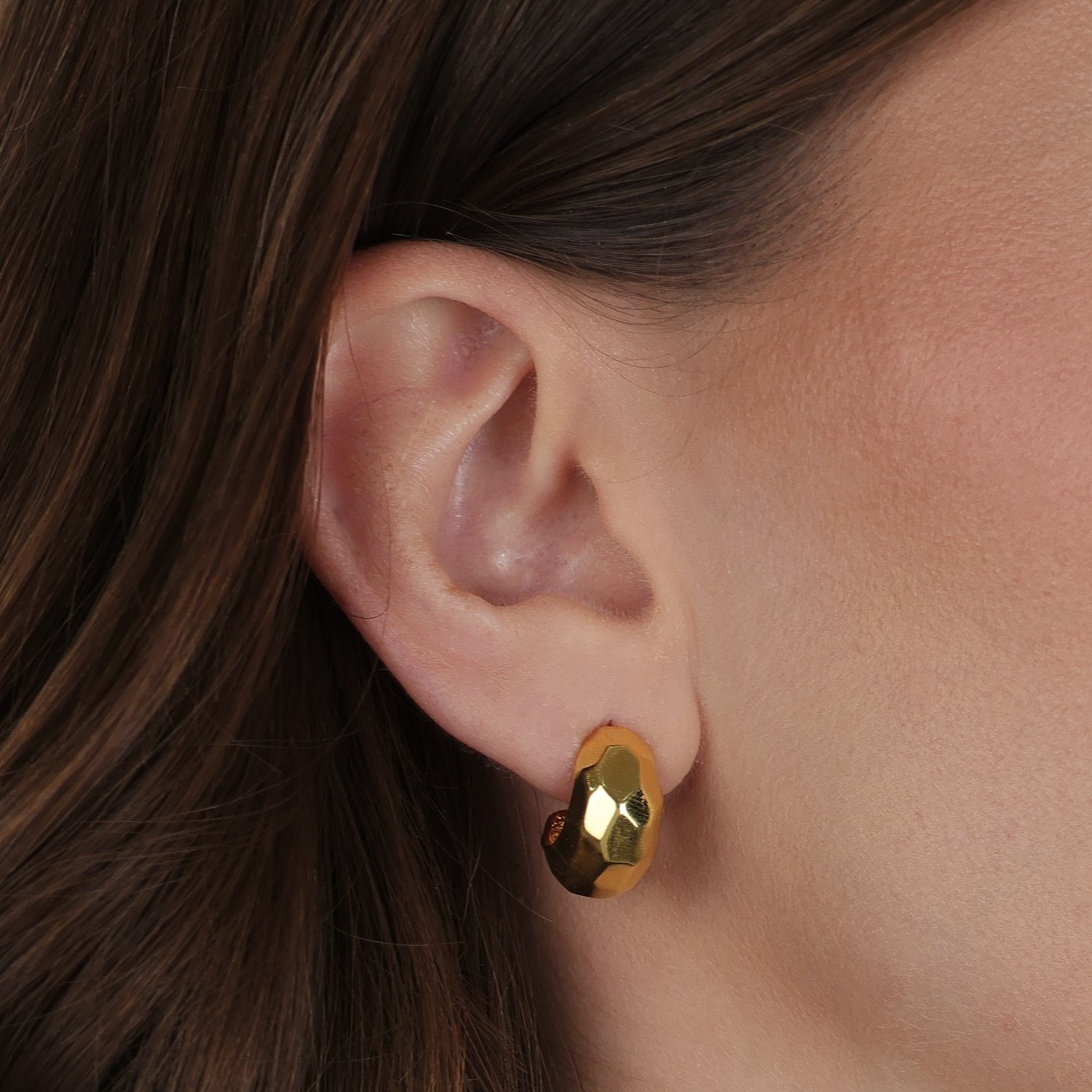 Altura: 2cm. Largura: 1,5cm. Espessura: 1cm. Peso: 1,5g. Pedra: N/D. Banho: 10 Camadas de Ouro 24K. Possui Tecnologia Antialérgica.